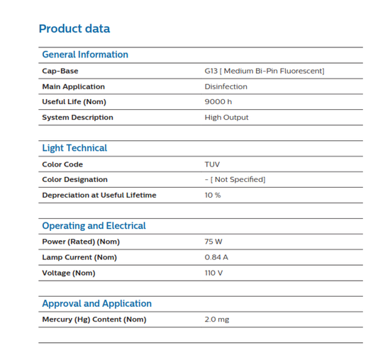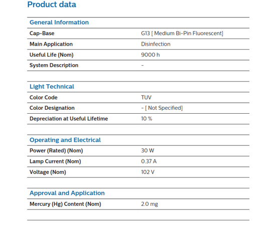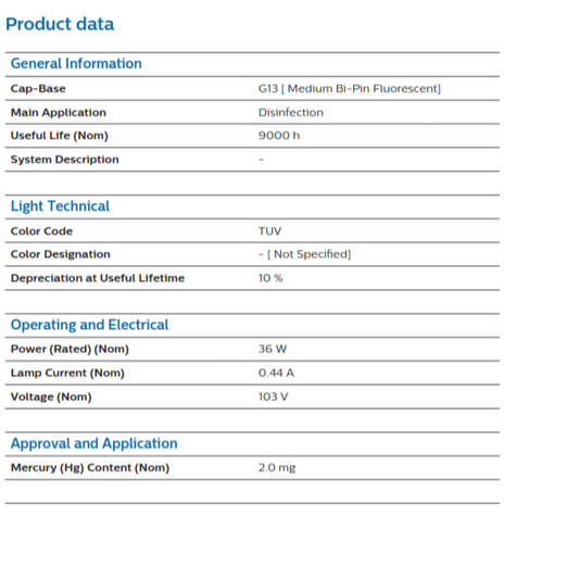 Tubo fluorescente - AQUASTAR - SYLVANIA - 18W / 174 - 10000K