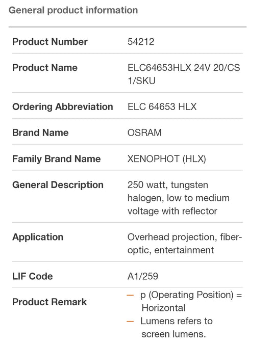 24V - 250W - EHJ - 64655 - HLX - OSRAM