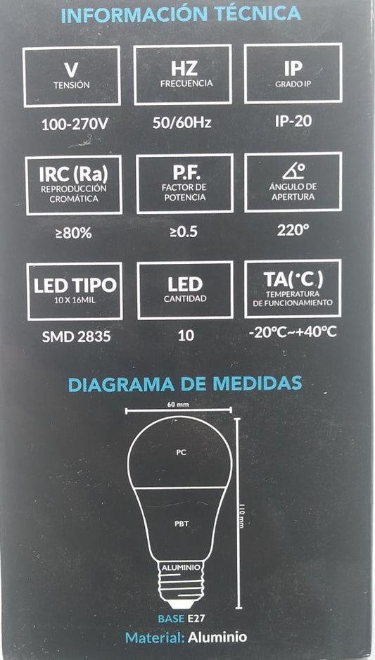 Bombillo LED - 7W - 3000K Cálido - Rosca E27
